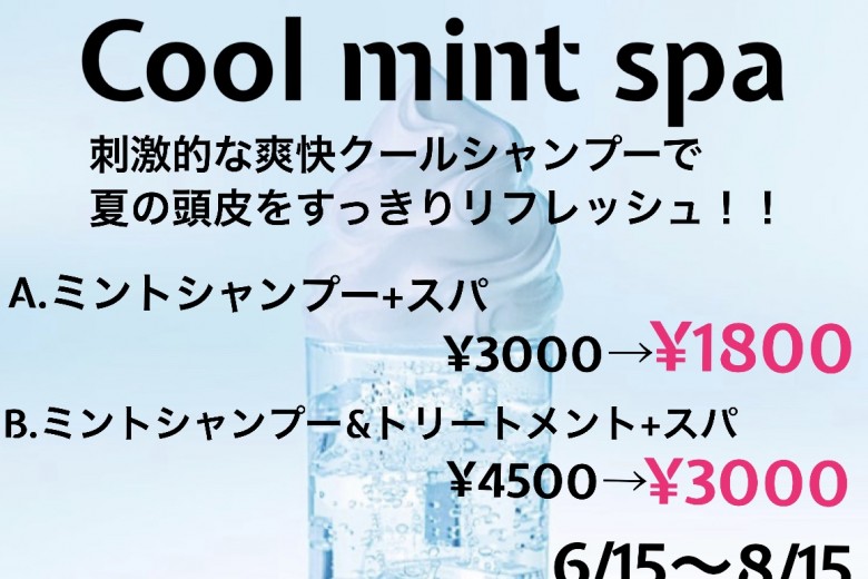 残暑をミントシャンプーでスッキリ過ごしませんか?ミントシャンプーとスパがセットになったお得なコースご用意してます✨