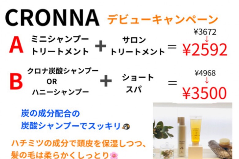 こんにちは!四月、五月のキャンペーンでやっているクロナのスミシャンプー😇血行促進し、頭皮の汚れもスッキリ🐧、ハニーシャンプーで、頭皮や髪の乾燥も改善します🍯