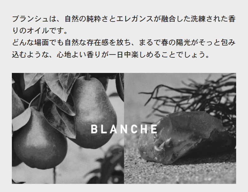 仕上げのオイルやバームの上から香りを重ね付けすることで、自分の好みの香りを楽しむことができます。